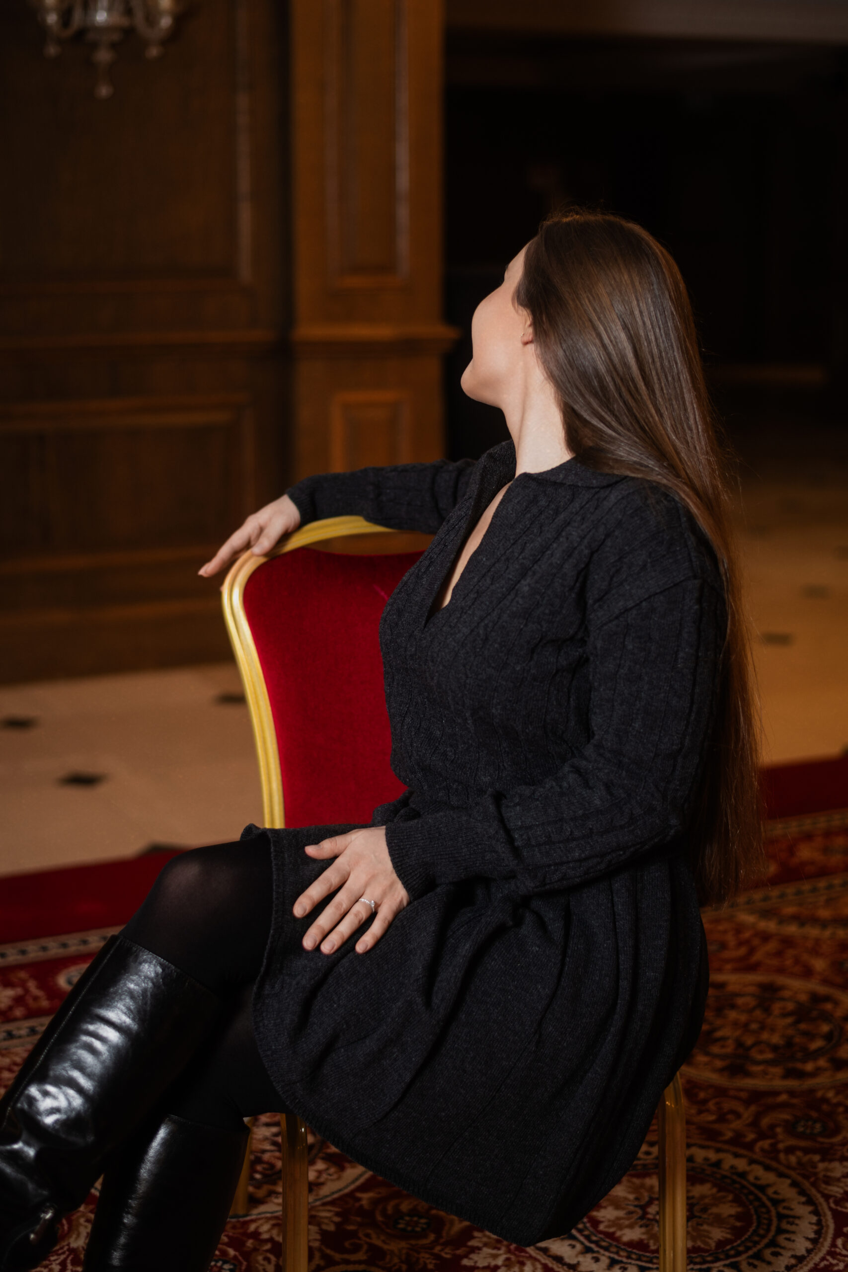 Prabangus 100% alpacos vilnos megztukas idealiai priglunda prie kūno, o V formos iškirptė sukuria neprilygstamą įvaizdį. Leisk jaukumui apgaubti tave ir parodyti gražiausią savo versiją.